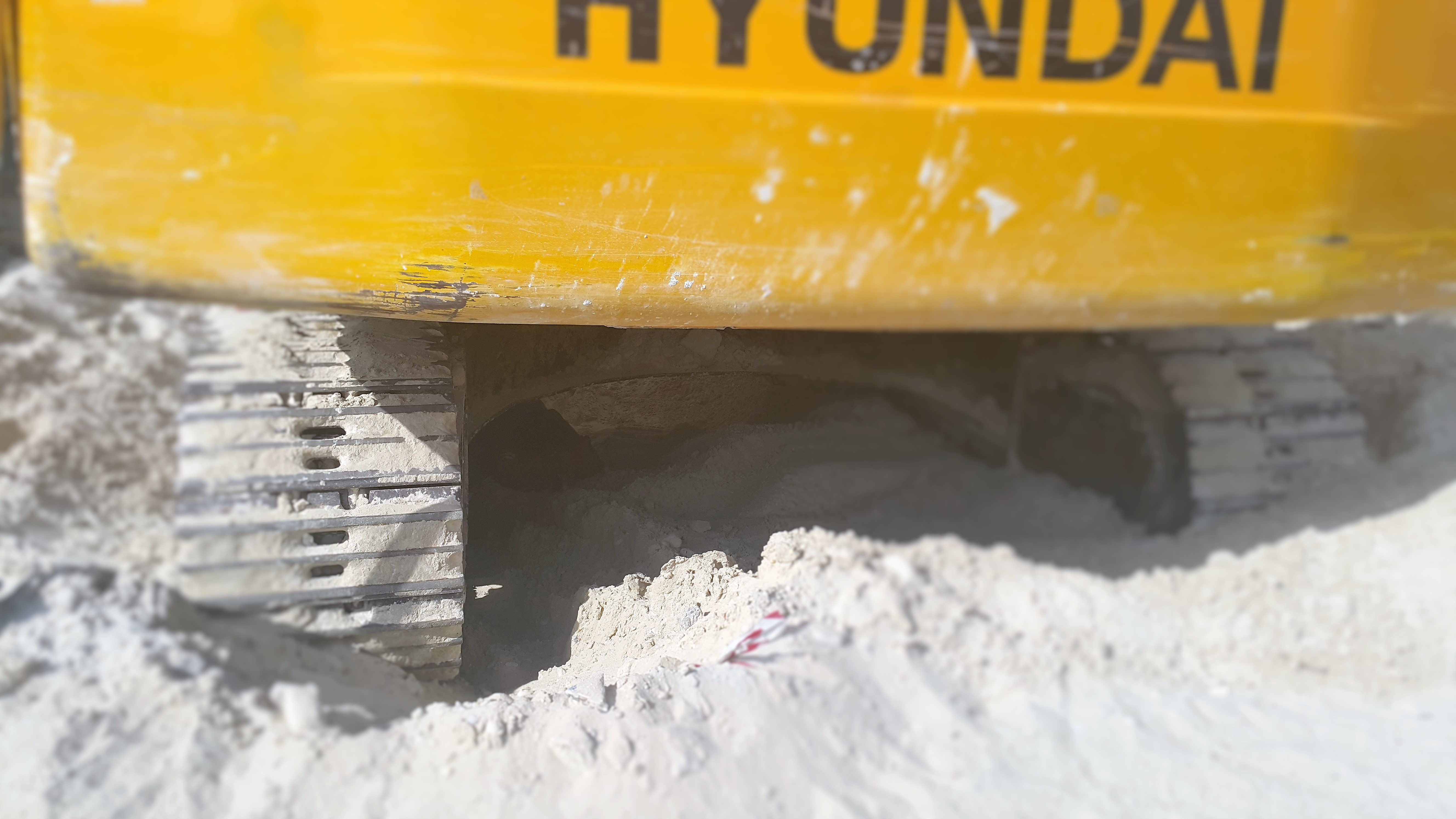 I honestly don’t have the right words to describe my reaction when I took a long walk yesterday and came across this Caterpillar with the man fast asleep under it. Look at the left side of the photo. Under the heavy artillery is a mound of a human being.